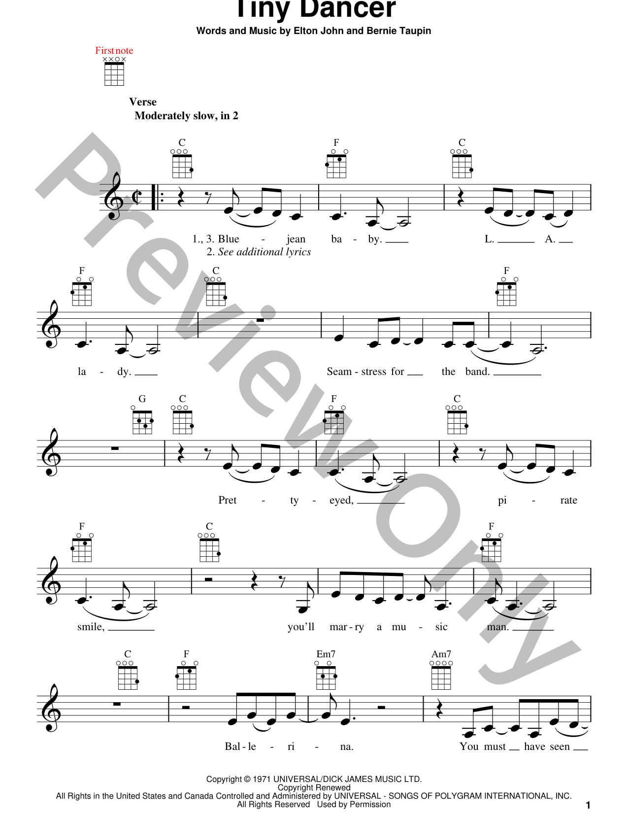 Tiny Dancer for voice and other instruments (fake book) by Elton John, Bernie Taupin, chords, lead sheet and lyrics included skill level: intermediate - genre: pop, rock printable, downloadable